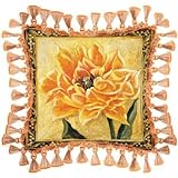 This delightful accent pillow adds a bright splash of color to any setting. From the North Carolina workshops of Pure Country Weavers, it is woven on a jacquard loom for an heirloom quality finished product that will last for generations. Warp and weft threadwork achieves a broad range of colors. 100 percent cotton polyester filler. Without zippers. Gold thread fringe. Jacquard loomed. Heirloom quality. 100 percent cotton polyester filler. Without zippers. Gold thread fringe. 27" high. 27" wide.