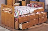 Twin Captain Bed with Trundle & 3 Drawers in Honey Pine Finish ADS80420 |